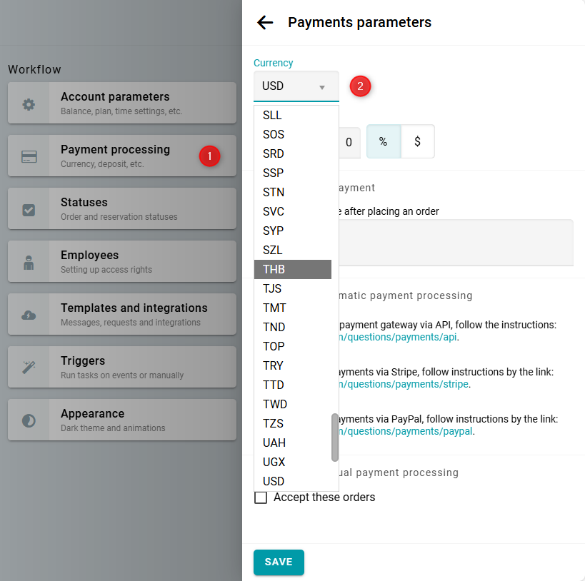 Ten en cuenta que todos los pagos siempre se procesan en la moneda base de la cuenta. Lo mismo aplica para los mensajes enviados a los clientes. La moneda del widget se usa solo para mostrar los precios como referencia para tus clientes.