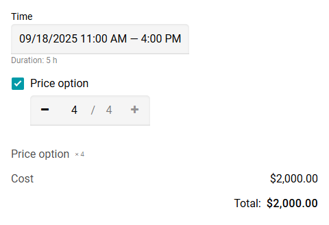 Supongamos que el precio por hora es $100. La fórmula será la siguiente: $100 multiplicado por el número de horas, multiplicado por el número de unidades.