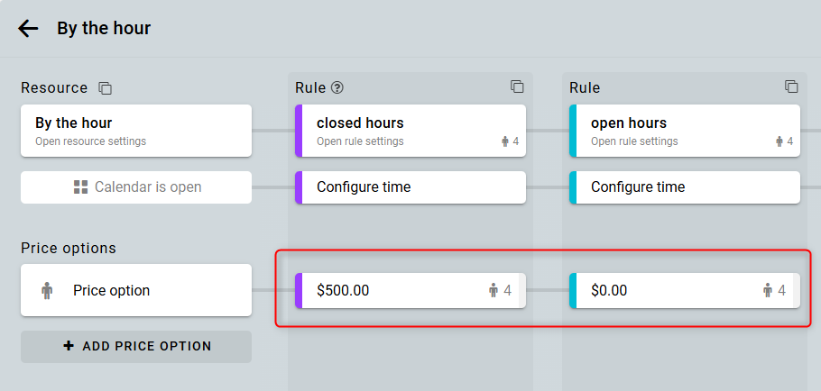 Desactiva el ajuste de precio en la regla de horas cerradas. Ahora, el costo por hora se calculará solo para reservas durante las horas abiertas. El costo diario se aplicará solo cuando se reserven los intervalos de horas cerradas.