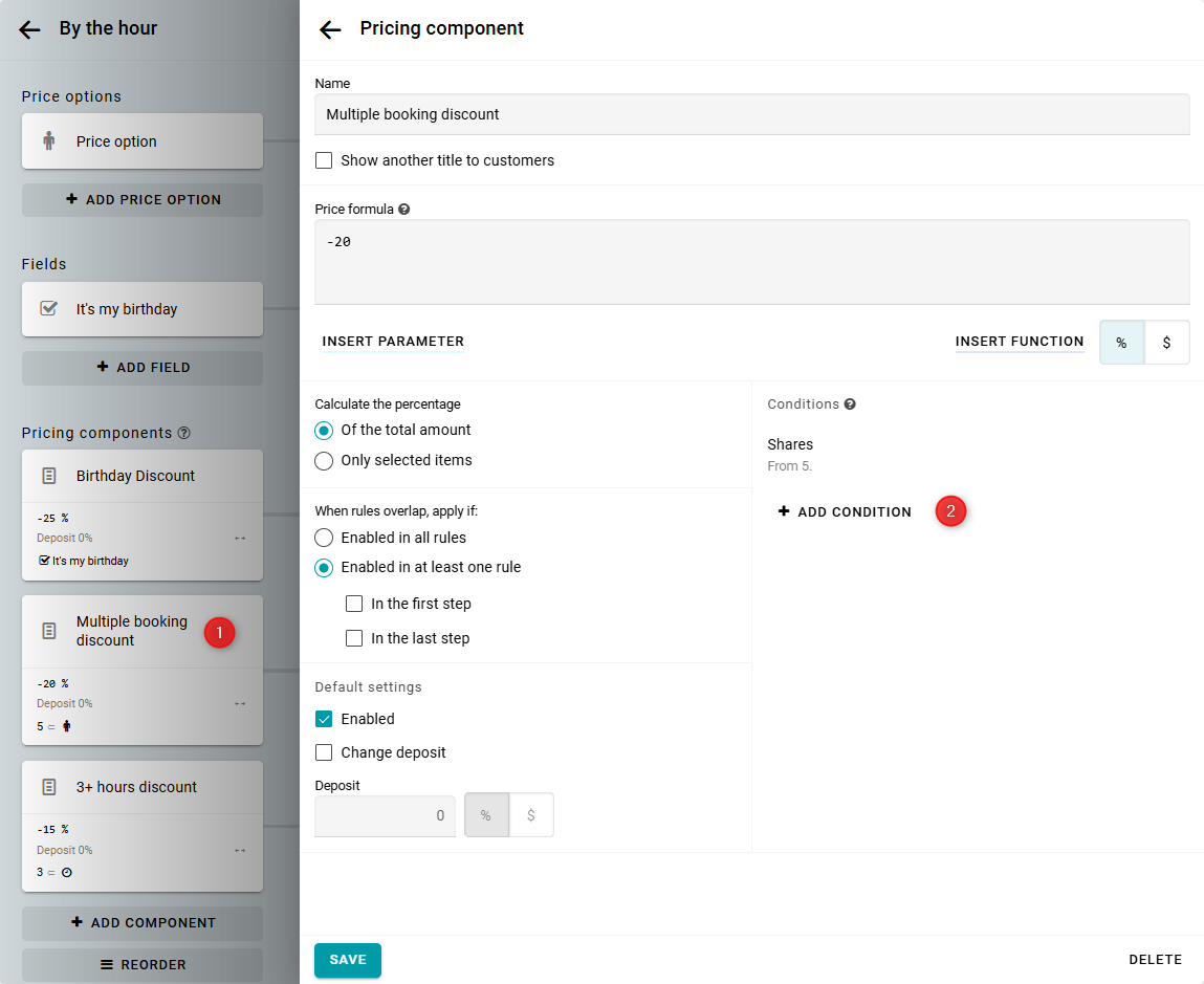 En este recurso, el descuento por cumpleaños está en la parte superior. Esto significa que tiene la mayor prioridad. El descuento siempre se aplicará si la casilla "Es mi cumpleaños" está seleccionada. No necesitas cambiar su configuración. Continúa con el siguiente descuento.