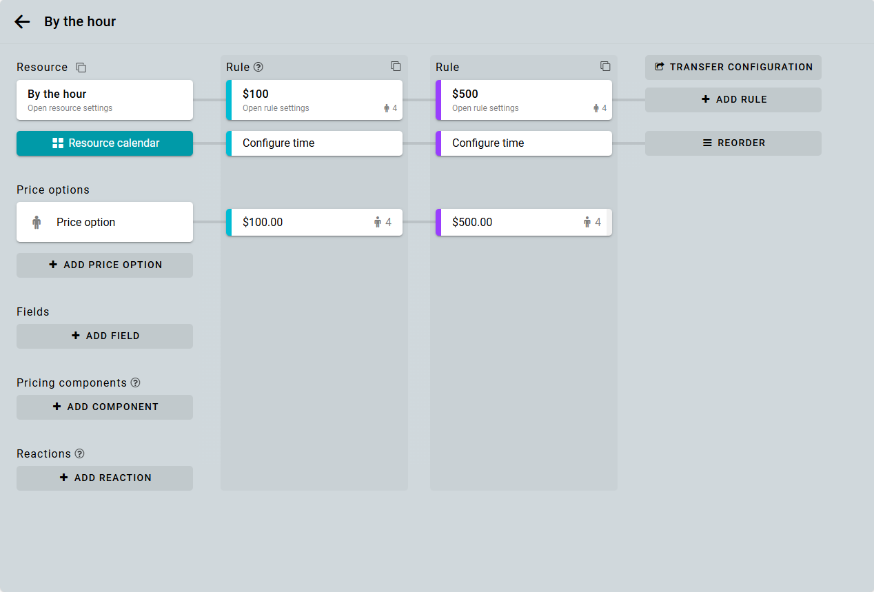 Crea un ajuste de precio de descuento para cada tarifa por hora.