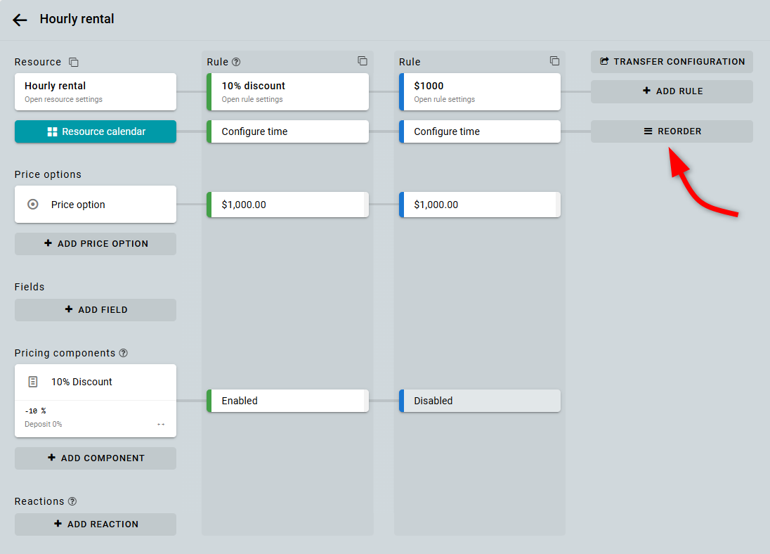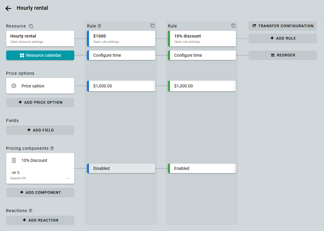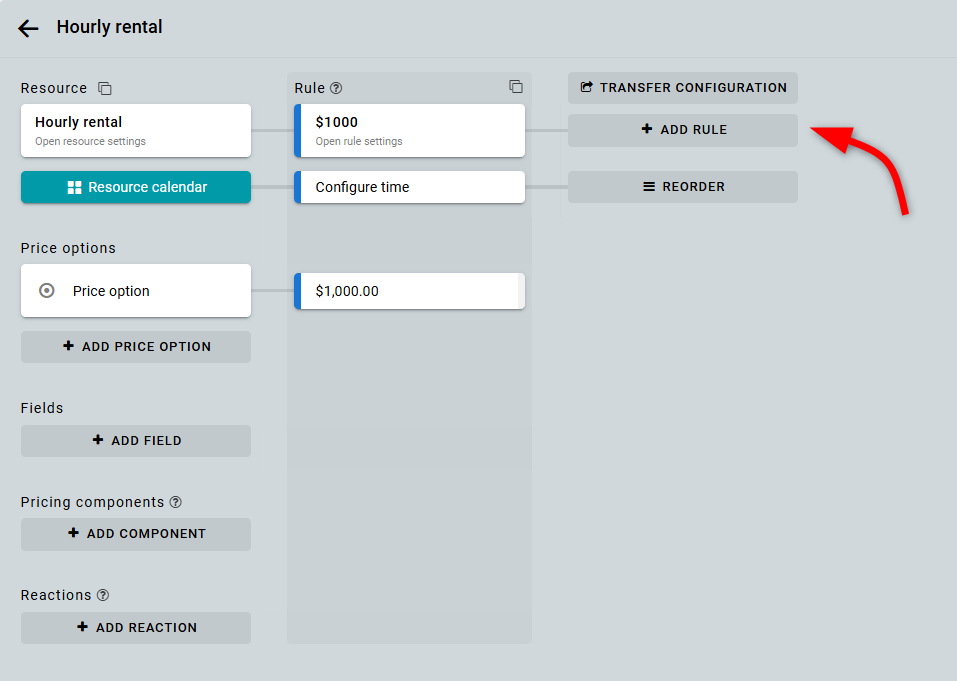 Supón que ya tienes un recurso con una regla existente, por ejemplo, un alquiler por hora.