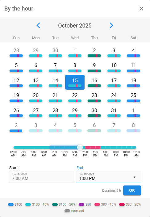 Primero, tienes que determinar cómo dividir correctamente el tiempo del calendario en segmentos. Si algún parámetro de la reserva cambia con el tiempo, debes crear una regla aparte para ello.