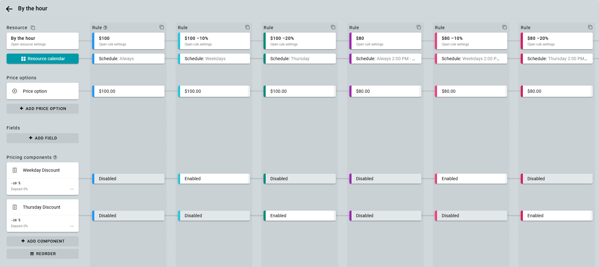 Si tienes descuentos simples y de una sola vez sin un calendario, puedes crearlos sin vincularlos al calendario del recurso. Lee más sobre esto