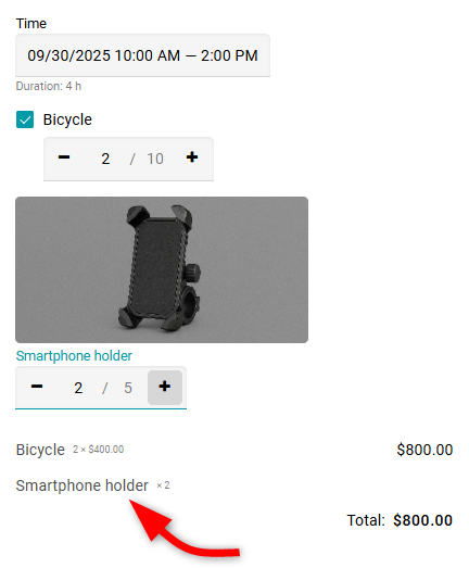 Si usas el campo Número, el formulario de reserva mostrará la cantidad de unidades de equipo restantes.