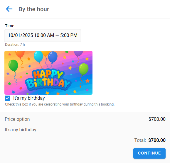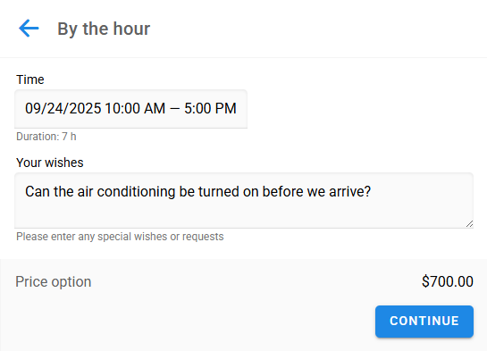 En el formulario de reserva, estas Opciones se ven así: