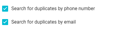 Para evitar la creación de contactos duplicados, selecciona las casillas Buscar duplicados por número de teléfono y/o Buscar duplicados por correo electrónico. Los contactos y empresas se buscan primero por teléfono y luego por correo electrónico. Si se encuentra un contacto o empresa, se vinculará al lead.