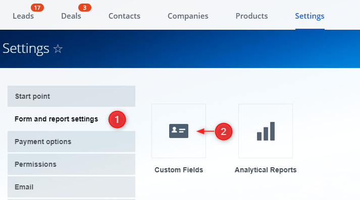 Haz clic en la pestaña Configuración de formularios e informes y abre Campos personalizados.