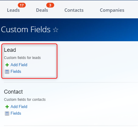 Agrega todos los campos requeridos solo al lead. Si usas el modo CRM simple, el lead creado se convertirá automáticamente en un trato y un contacto. Especifica las reglas para transferir campos (consulta la sección de abajo para más detalles).