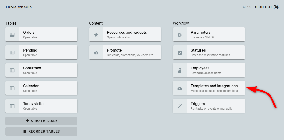Inicia sesión en tu cuenta de Bukza. Ve al panel y haz clic en Plantillas e integraciones.