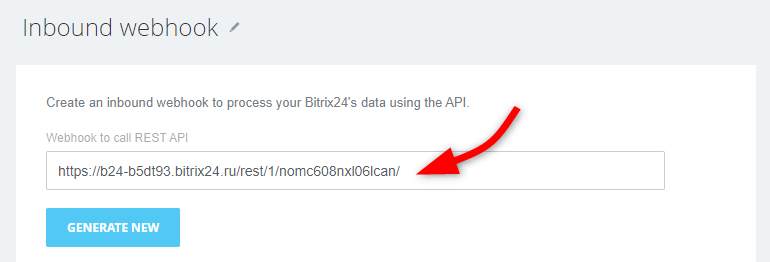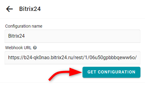 Haz clic en Crear configuración para Bitrix24, ingresa tu URL de webhook de Bitrix24 y luego haz clic en Obtener configuración.