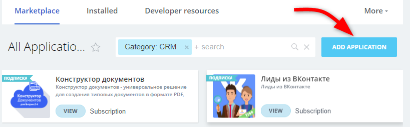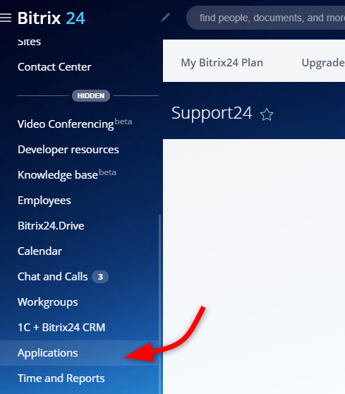 En Bitrix24, abre la sección Aplicaciones y haz clic en Agregar aplicación.
