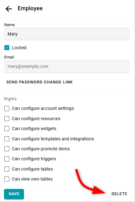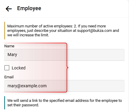 Si un empleado ya no trabaja contigo, puedes bloquear su cuenta y agregar un nuevo empleado.