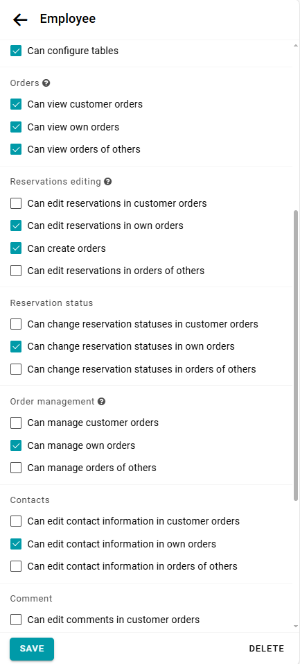 Después, selecciona los permisos que quieres otorgar al empleado y haz clic en Guardar.