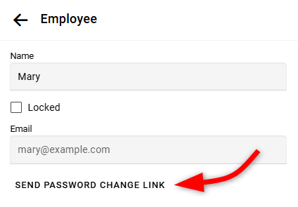 Para cambiar la contraseña de un empleado, ve al formulario de configuración y haz clic en Enviar enlace para cambiar contraseña.