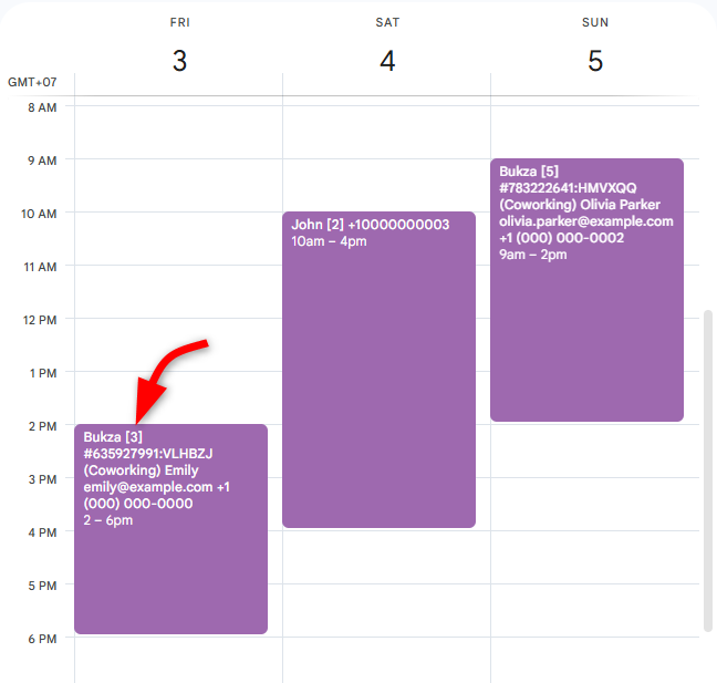 Cuando recibimos datos de Google Calendar, omitimos nuestros propios eventos para evitar duplicados. Los eventos importados desde Google no se convierten en reservas reales; solo bloquean tiempo en el calendario. Si cambias eventos "no Bukza" en Google Calendar, estos cambios también se reflejan en el calendario de Bukza durante la sincronización. Sin embargo, no debes modificar los eventos marcados con la etiqueta de Bukza, ya que los cambios en estos no afectarán las reservas originales en nuestro sistema.