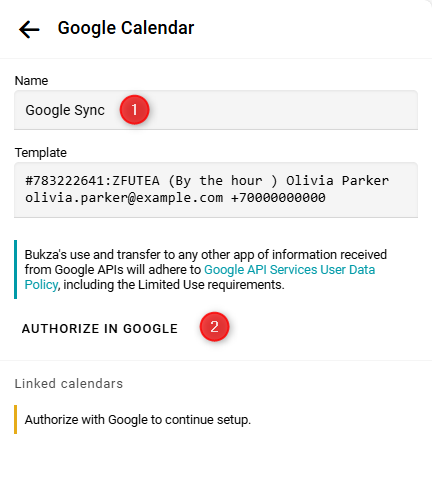 Si agregas un nuevo calendario a tu cuenta de Google, necesitas actualizar tu configuración en Bukza. Para hacerlo, abre la configuración y haz clic de nuevo en Autorizar en Google. Después de la nueva autorización, el nuevo calendario aparecerá en la lista de calendarios.
