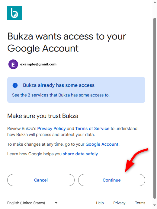 5. Otorga los permisos solicitados haciendo clic en Continuar.
