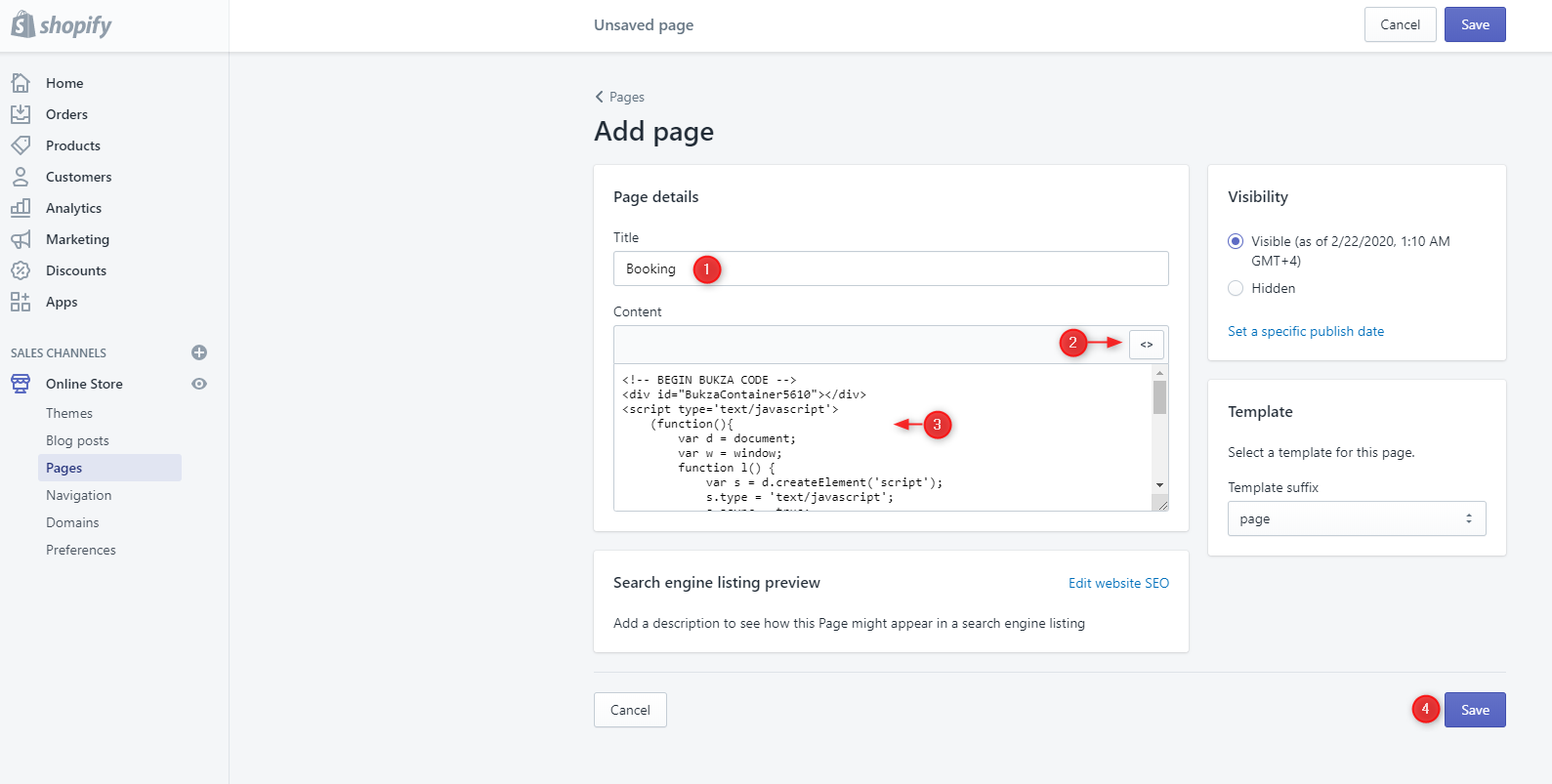En el área de contenido, cambia al modo de entrada HTML y pega el código del widget que copiaste antes.