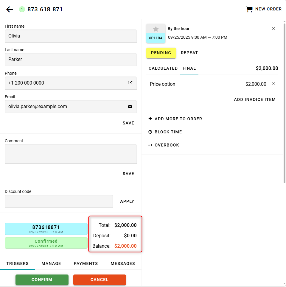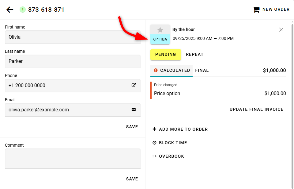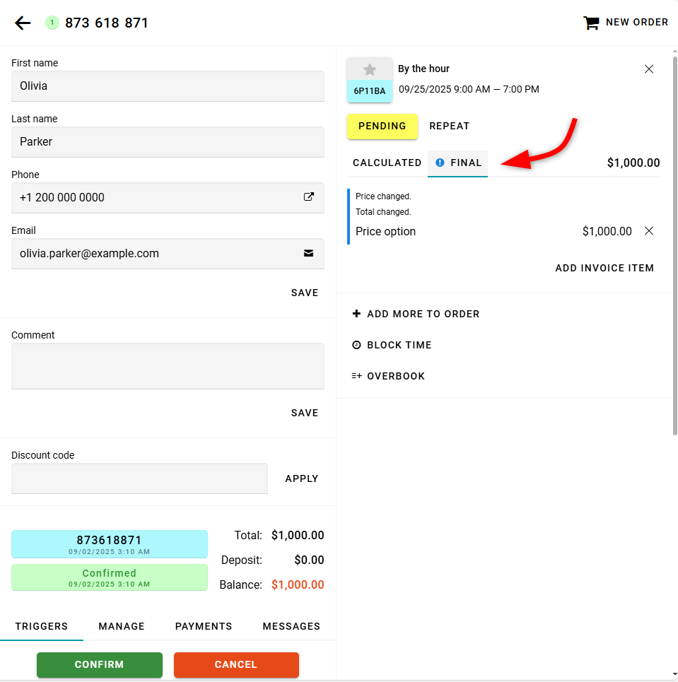 Si cambias el precio, aparecerá una advertencia indicando que el precio cambió. Esta advertencia se mostrará en la pestaña CALCULADO en los detalles del pedido.