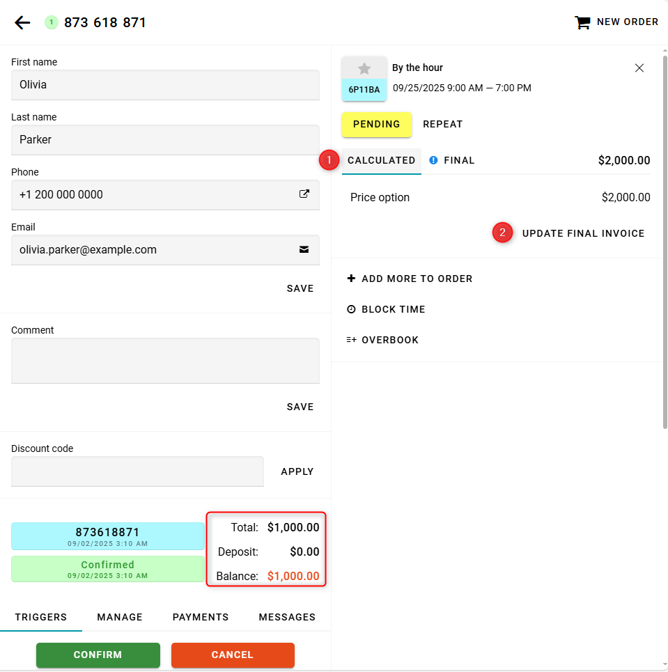 También puedes hacer clic en Actualizar factura final en la pestaña CALCULADO.