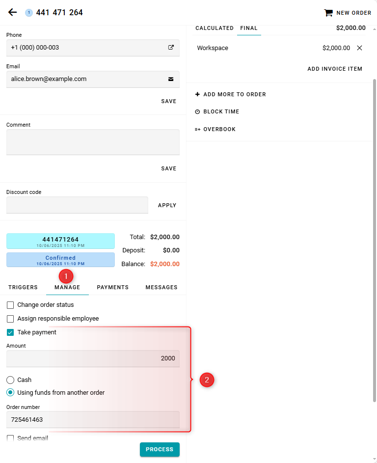 Elige el tipo de pago — Usar fondos de otro pedido.