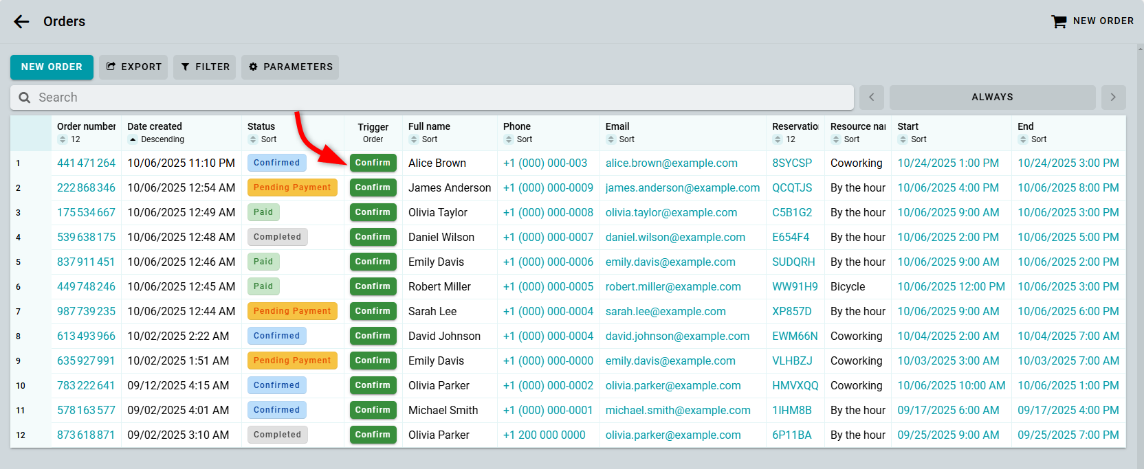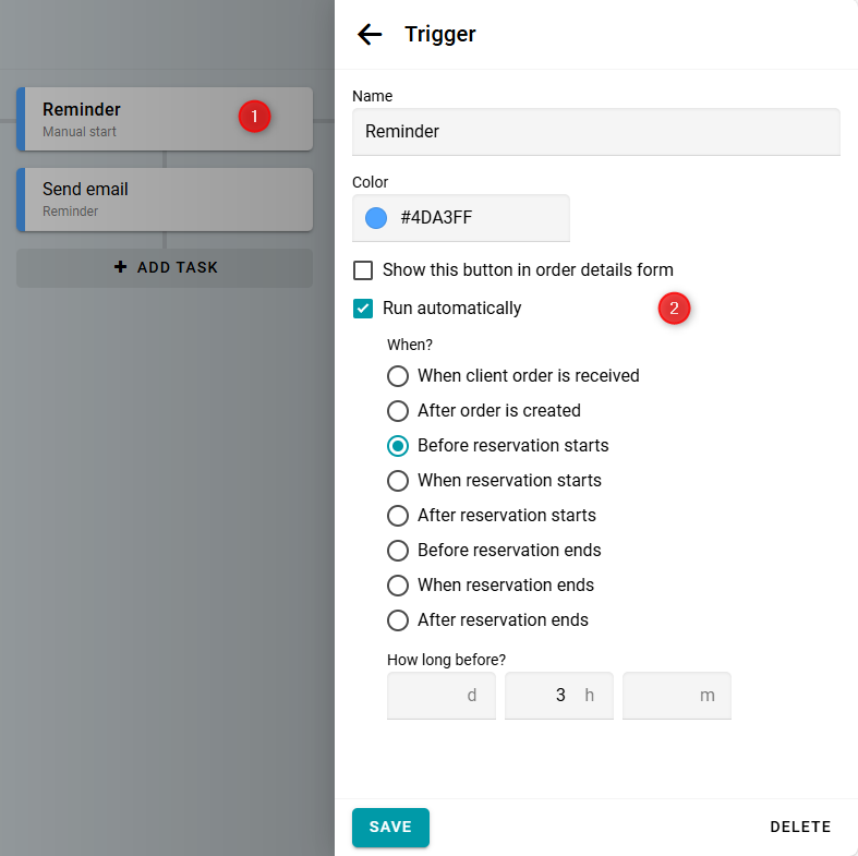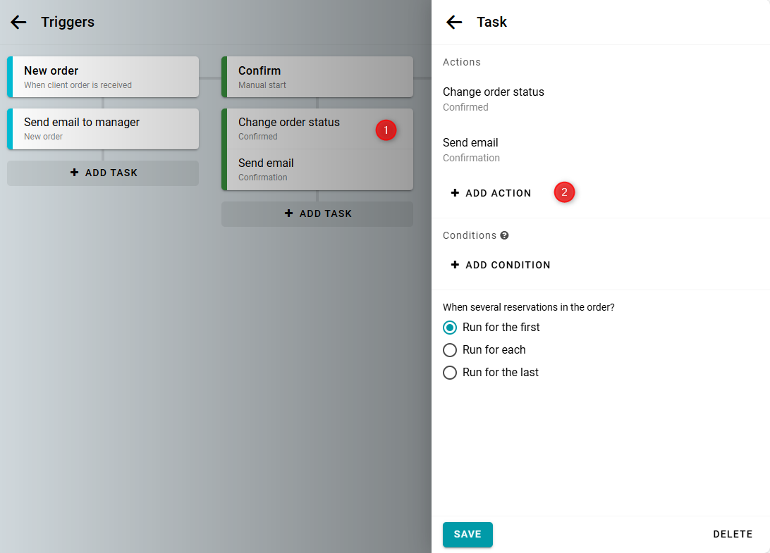 Es importante tener en cuenta que este parámetro se considera incluso si ejecutas una automatización para una reserva específica desde la tabla. Si se selecciona Ejecutar para el primero, pero ejecutas la automatización para la segunda o tercera reserva del pedido, la tarea se omitirá.