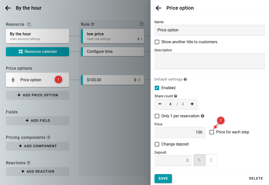 Precio por cada paso