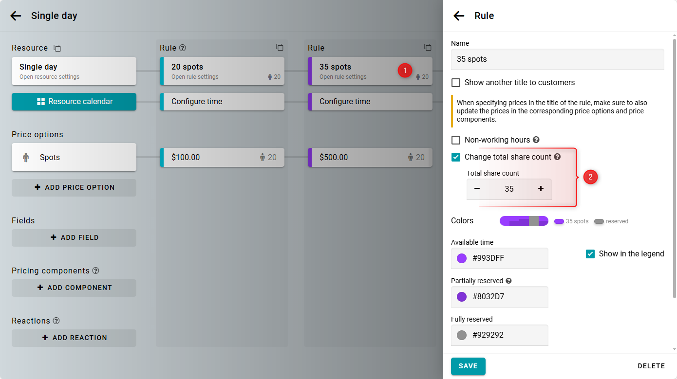 Ahora tendrás dos reglas. Decide cuál regla debe tener una cantidad diferente de boletos. Abre el formulario de configuración de esa regla e ingresa el Total de unidades necesario.