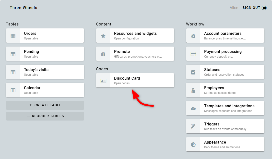 De esta manera, puedes agregar códigos de tarjetas de descuento al sistema.