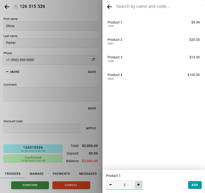 En la lista de productos, elige el producto deseado, ingresa la cantidad y haz clic en Agregar.