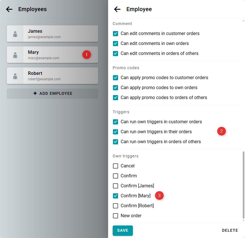 Marca las casillas necesarias de Poder ejecutar automatizaciones propias. En la lista de automatizaciones, selecciona la que creaste. Repite estos pasos para cada empleado.