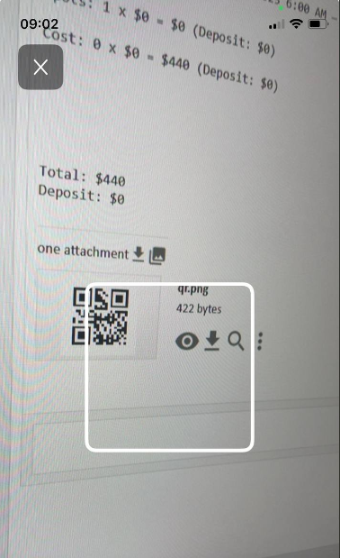 Al llegar, el cliente muestra este código en su dispositivo o en una copia impresa. El administrador escanea el código para acceder al pedido del cliente al instante—no hace falta ingresar el número de pedido ni buscar por datos de contacto.