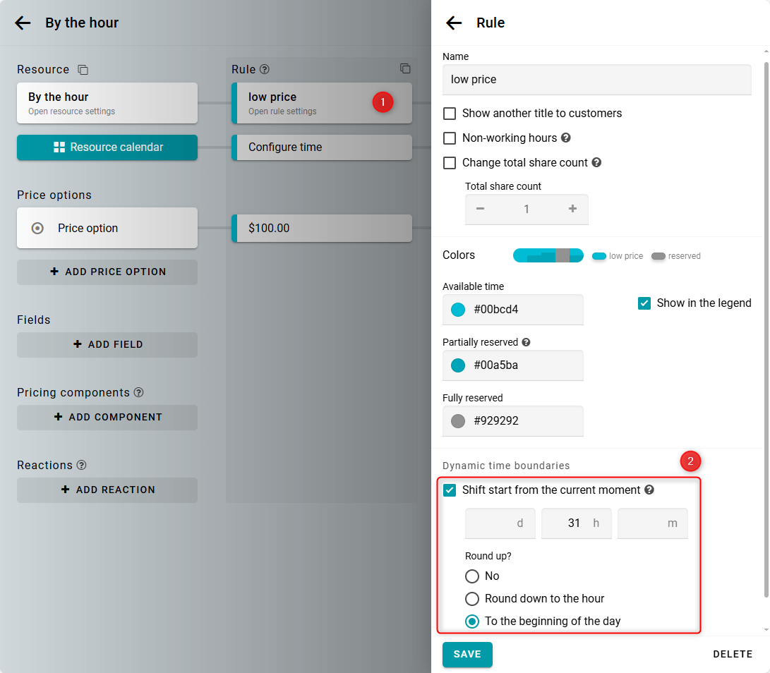 Abre la configuración de la regla. Establece el parámetro Desplazar inicio desde el momento actual en 31 h. Luego, configúralo para redondear al inicio del día. Guarda los cambios.