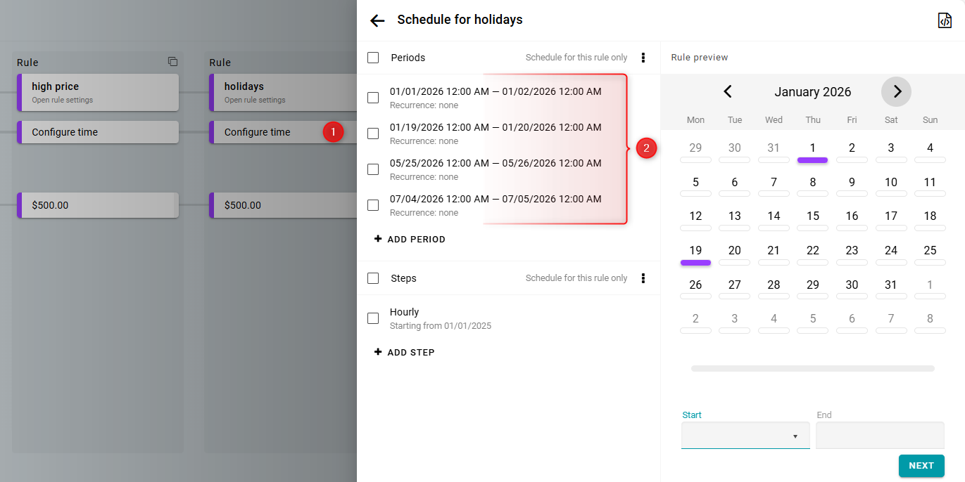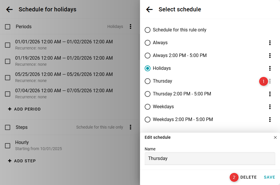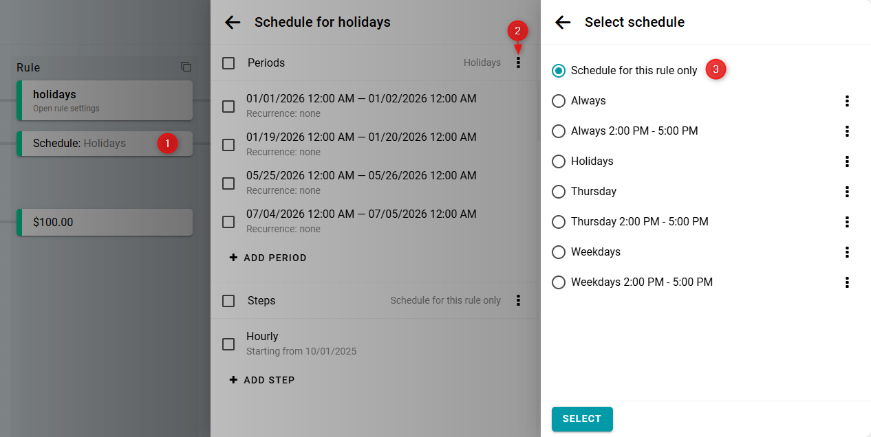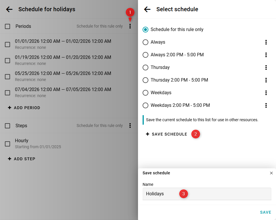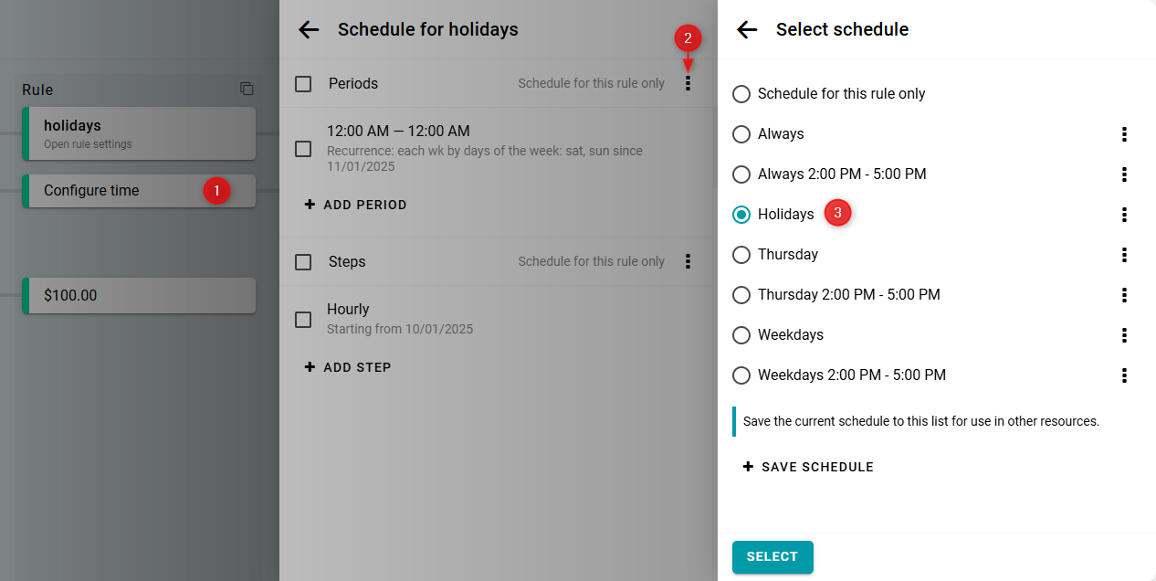 Si quieres actualizar el horario solo para un recurso que usa un calendario compartido, primero desvincula el calendario de la regla.